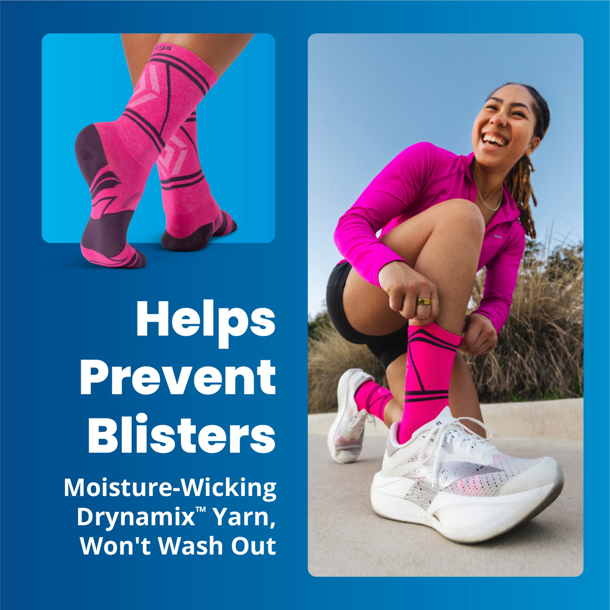 - BUILT-IN MOISTURE MANAGEMENT: Keeps feet cool and dry with Balega's Drynamix moisture-wicking fibers, plus specially constructed, reinforced microfiber mesh ventilation panels