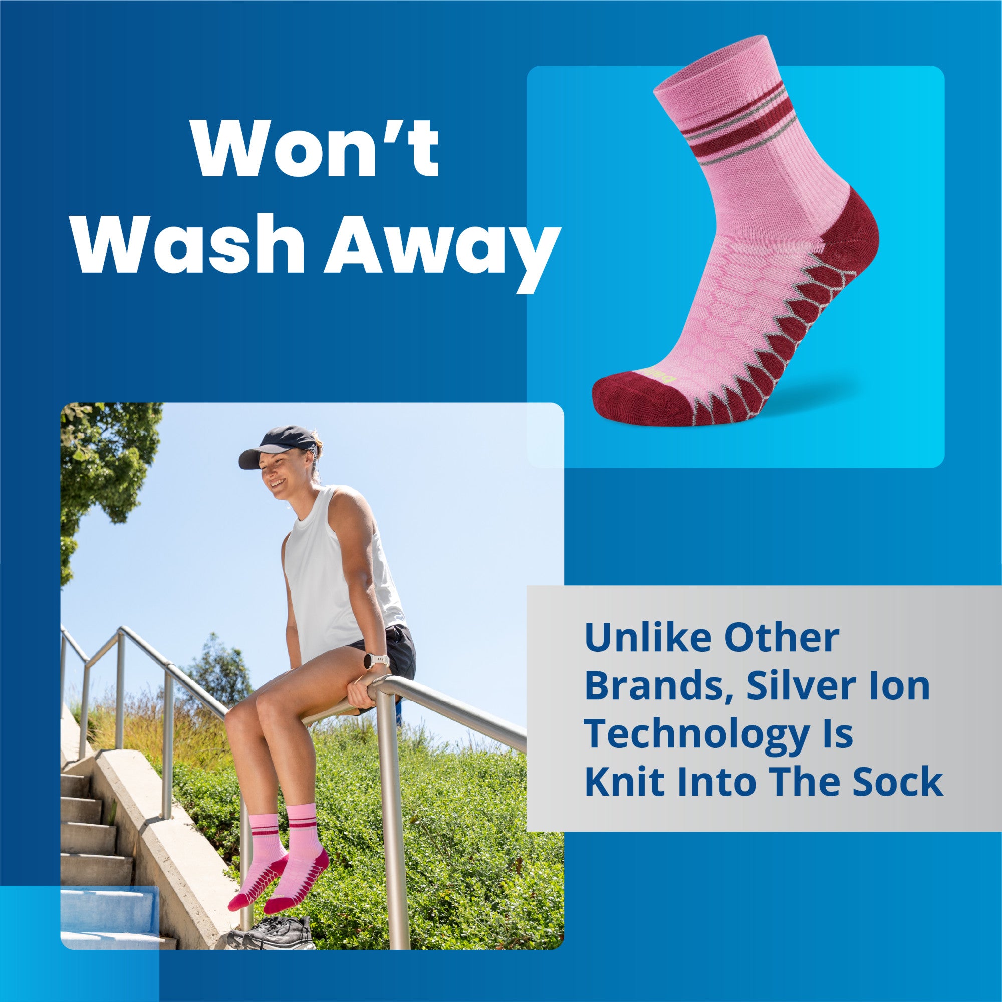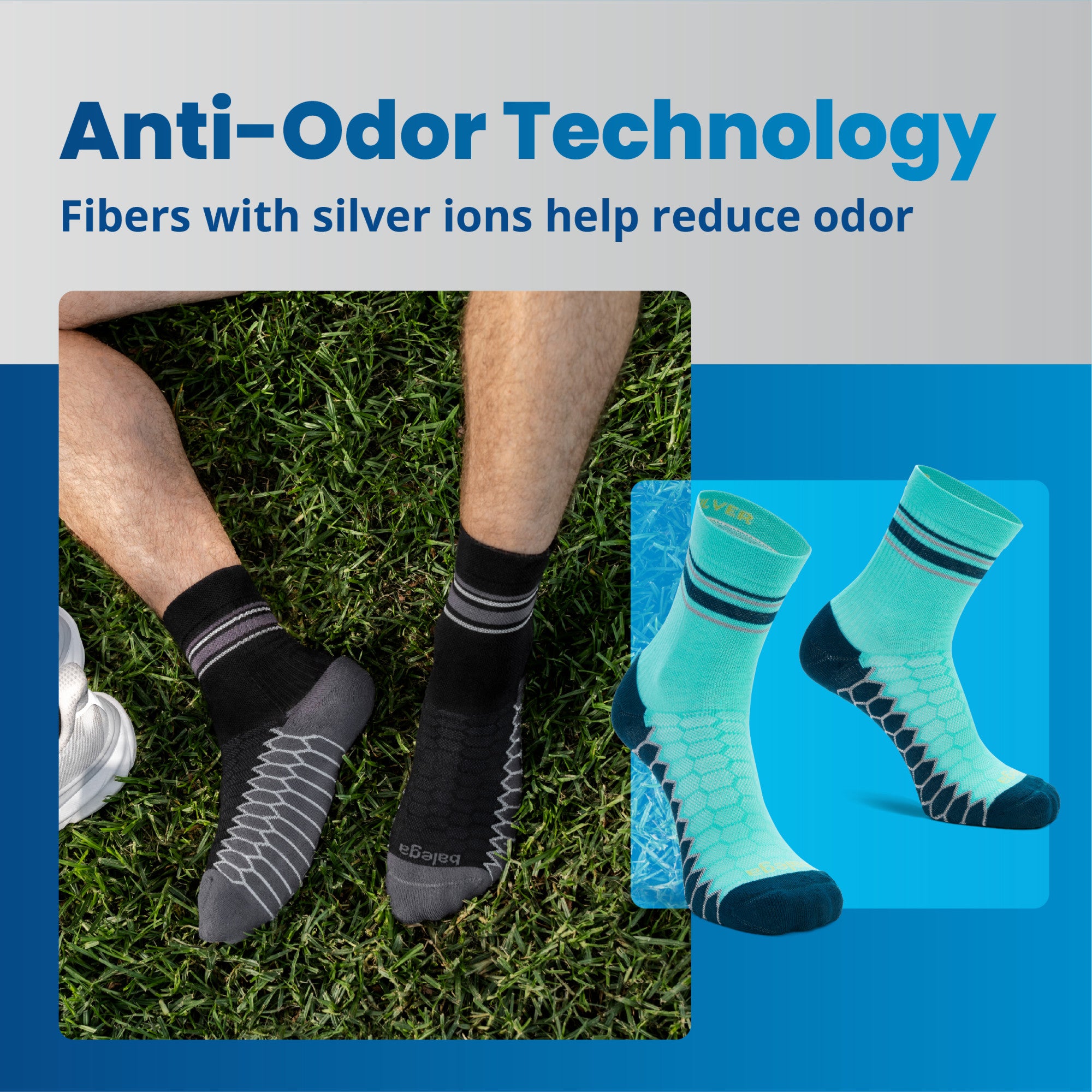 - Odor Control: Keeps feet feeling cool and fresh with yarns encapsulated in Silver ions for lasting running sock performance.